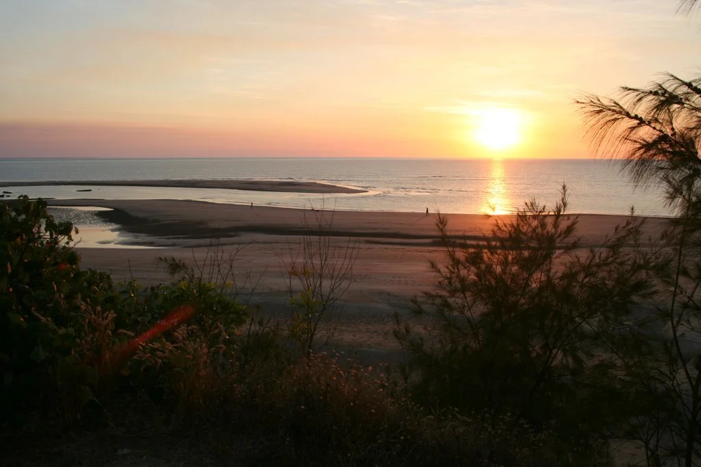 The third house we lived in was near the beach. Scrubland over the road gave way to a ribbon of rainforest then Casuarina pines lined siltstone beach cliffs: ochre scallops surveying the 8 metre tides. “Awful!” said my visiting friend. “Hot, muddy and desolate.” But I was coming to disagree. Hot and muddy, yes, but spacious as well as desolate. I would backflip over sand, hemmed alone into a triangular cove when the tide swelled, before scrambling up the cliff when waves lapped its base. Night by night, gliding through streamers of grass and yellow-flowered kapok trees on the way home, I’d stop in a clearing where I could escape the day. Spreadeagled on dirt in a thick tropical night, looking up, I slowly became just one more person who lived here, who learnt here, who remembered here.